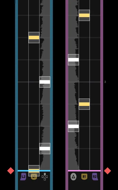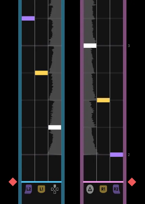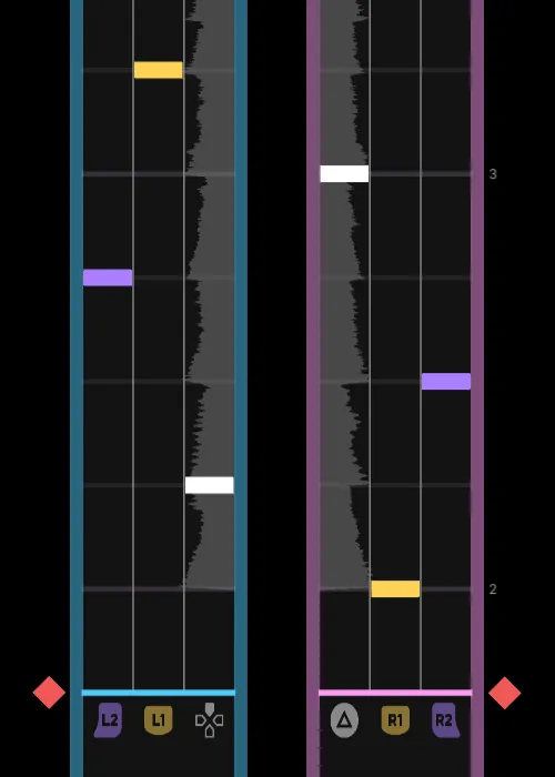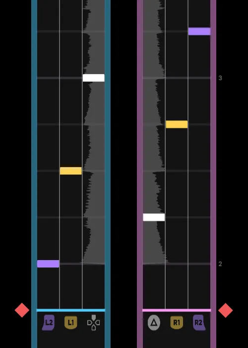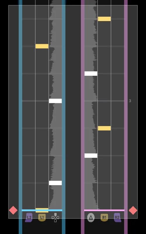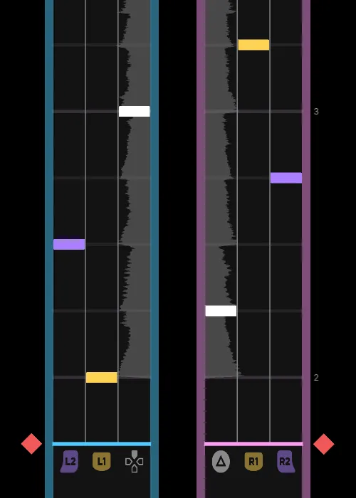 View → Controller glyphs: Allows you to see what lanes correspond to what keys or buttons in-game. This can be especially useful if you are trying to comprehend hand motions for different playstyles.
