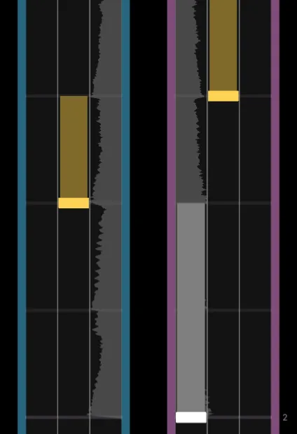 Section titled “Offsetting Tails”In some charts, the tails of hold notes are offset backwards by 1/16th subdivision. This is commonly done in hold-heavy sections to make reading easier, decreasing simultaneous note elements on one lane. In other charts, the tails of hold notes are offset forwards by 1/16th subdivision or more. This is used to exaggerate the overlap, low attack, or pitch bending of synths. Depending how you do it, offsetting hold notes’ tails can make for more visual clarity or visual intrigue.