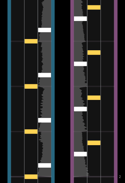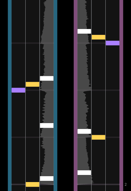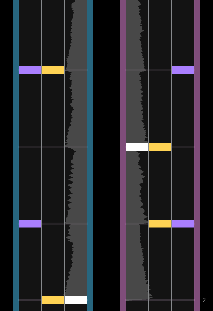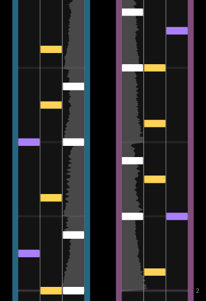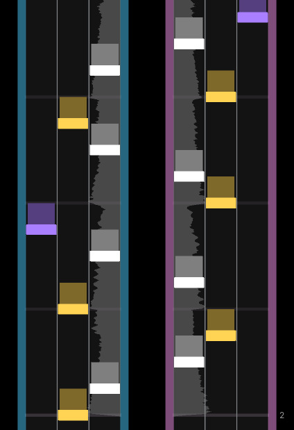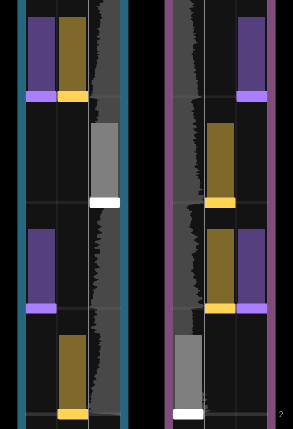Using classic patterns is not just a tool for essential charting, however. In a much more granular sense, all patterns that use tap and hold notes can be diffused into an reworking or combination of common patterns. Knowing about common patterns can make the charting process faster, but being able to use common patterns in tandem with unique patterns maximizes your ability to make a fun, yet unique chart.